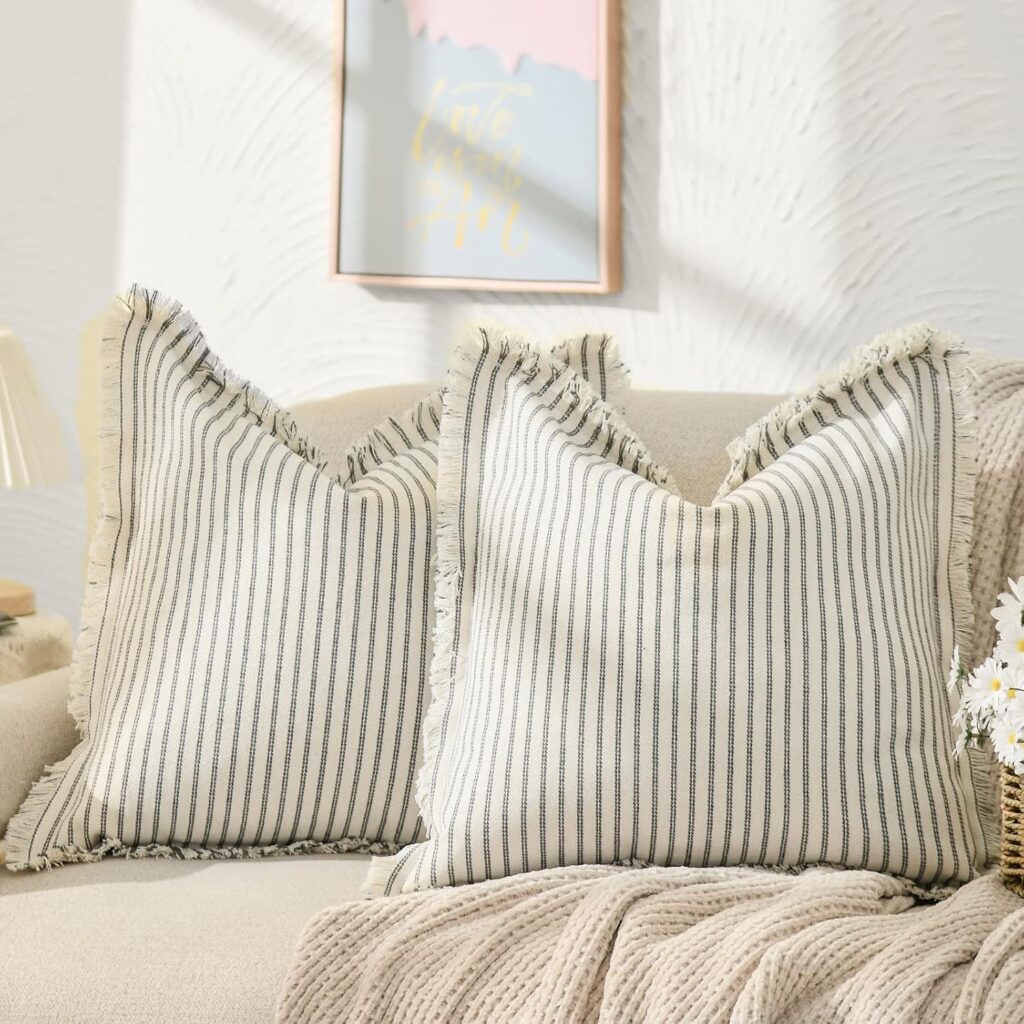- Swap throw pillows for lighter, linen textures