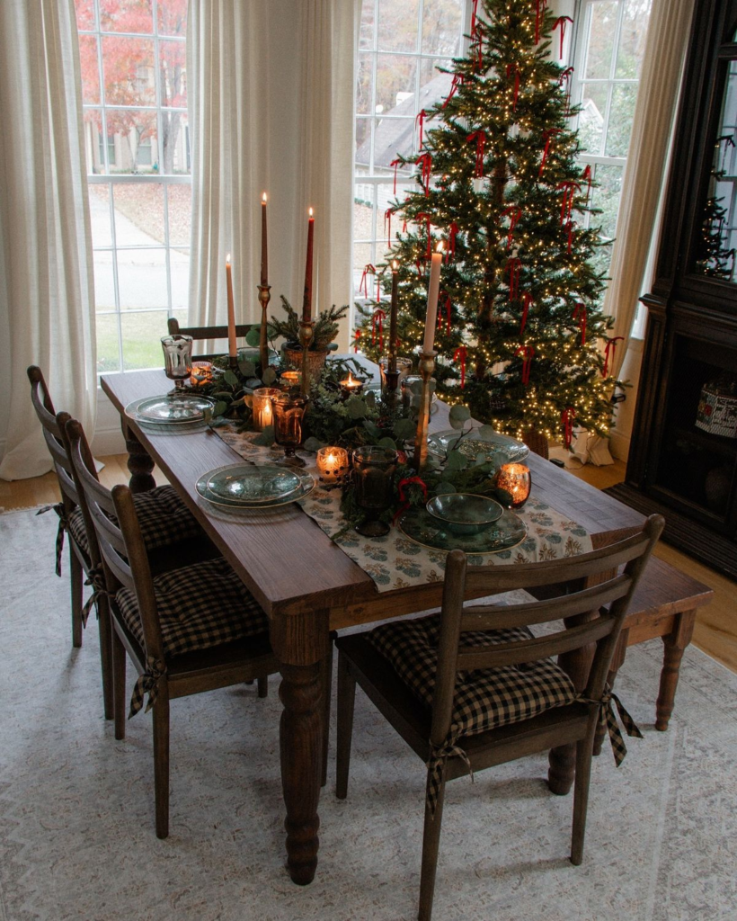 Another way to create an elegant old world Christmas on a budget is by layering textures throughout your home. Think plaid blankets, velvet ribbons, and linen napkins at the dinner table. Paired with plenty of candlelight, these small touches give your space a glow that feels magical. Since candles and fabrics can be reused each year, they’re worth the small investment.